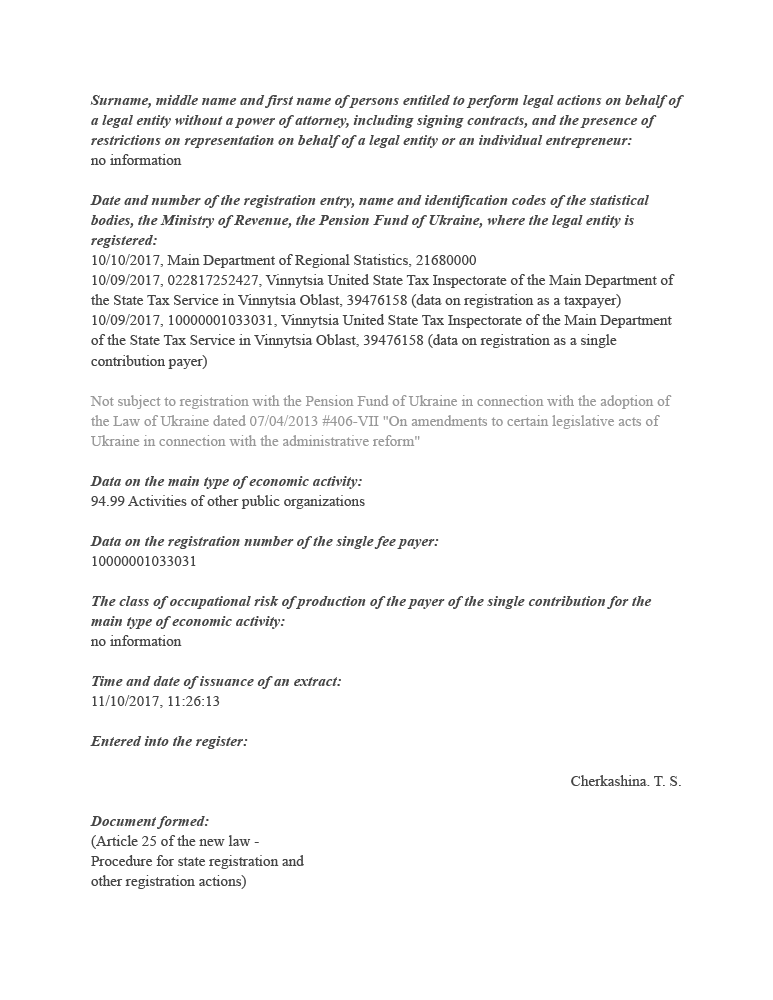Current account № UA473020760000026001300872067 in hryvnias.