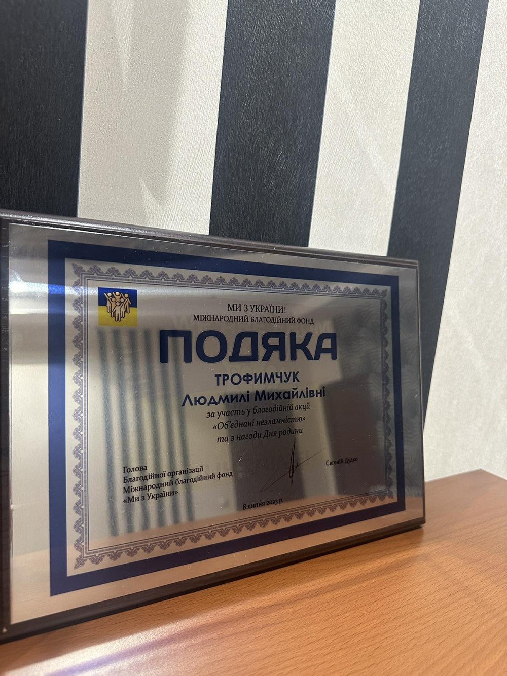 8 липня Вінницькому центральному парку імені Миколи Леонтовича до Дня сім'ї відбувся благодійний захід для внутрішньо переміщених сімей та дітей, які батьки загинули на війні «Об'єднані незламністю». до свята доброчинності та стали спонсором. На 100 тисяч гривень було закуплено подарунки для діток у вигляді канцелярського приладдя, рюкзаків та інших подарунків. За участь у благодійному святі організатори Міжнародного благодійного фонду "Ми з Україною" наш колектив нагородили Подякою. Наближаємо Перемогу України разом!